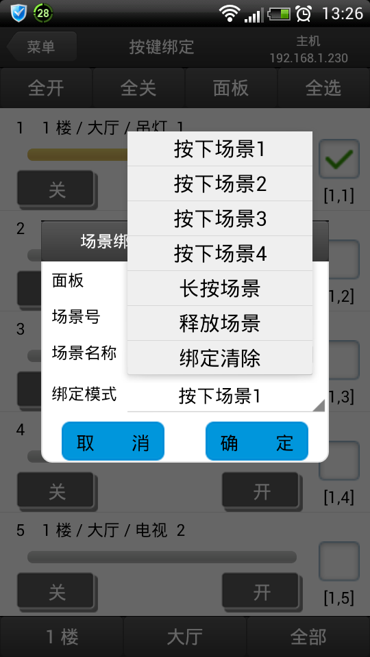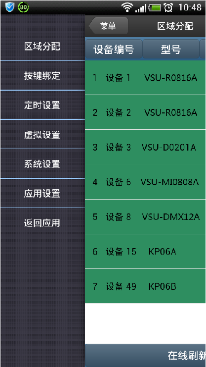結(jié)合工程實(shí)際,VSU-GW64主機(jī)與基于VSU-NET總線的VSU-R0816A執(zhí)行模塊、面板、觸屏等組成智能照明控制系統(tǒng),通過(guò)我們提供的免費(fèi)安卓版配置軟件,可以輕松實(shí)現(xiàn)按鍵綁定、場(chǎng)景設(shè)置、定時(shí)等配置及控制。