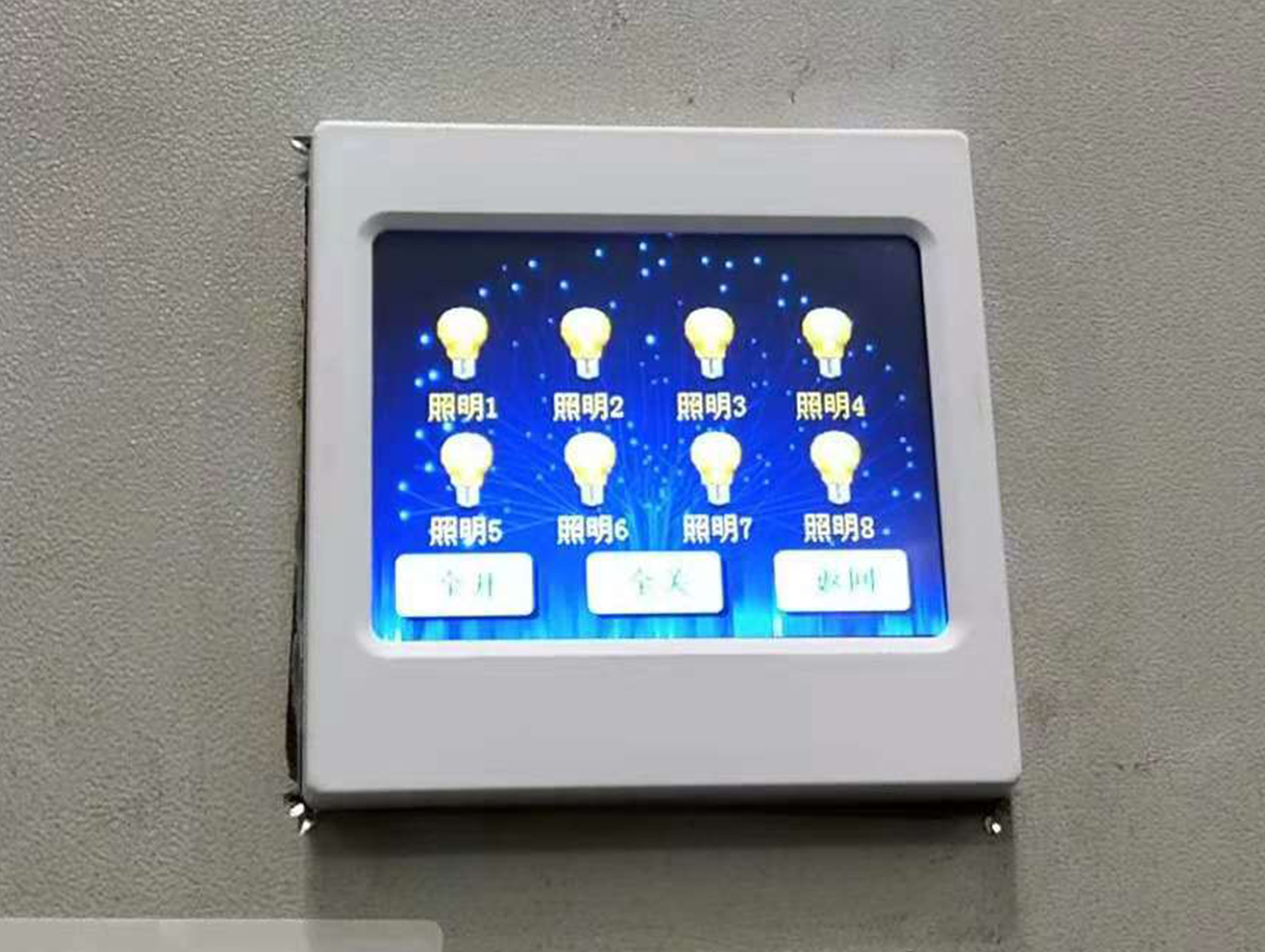 如上圖所示,在安裝上了控制模塊后,使用觸摸屏可選擇一鍵全開全關(guān)功能,簡(jiǎn)潔明了。