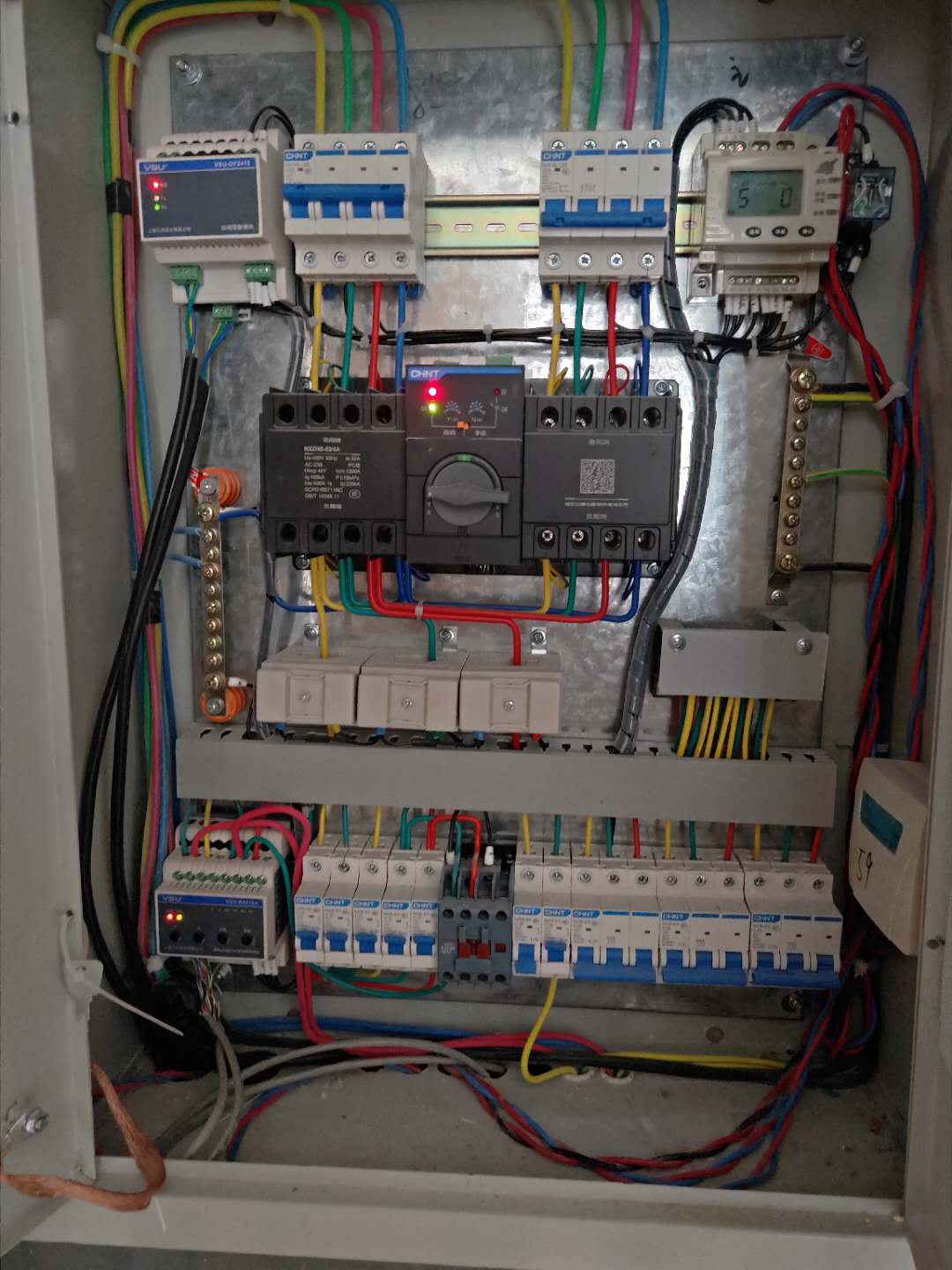 “謹慎純樸,好學向上;敬業(yè)愛生,探索未知?!弊蛉瘴宜炯夹g人員前往昆山參與培本小學的項目調(diào)試工作,查看了電箱內(nèi)部照明模塊工作狀況一切正常后,將照明控制軟件錄入到該??刂平K端的電腦里,編程后控制效果也一切正常。