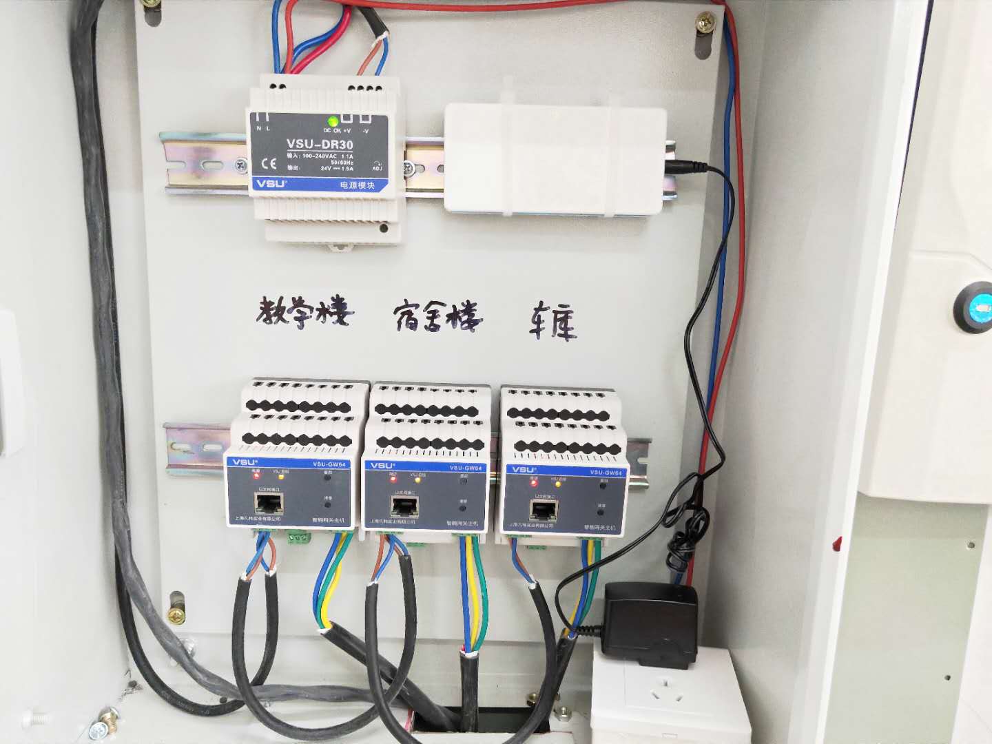 如上圖所示教學樓、宿舍樓、車庫等地分別配了一只智能網(wǎng)關模塊。