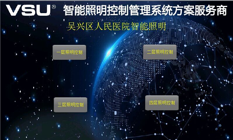 上圖為吳興區(qū)人民醫(yī)院項目VSU智能照明電腦終端控制界面:一層照明控制、二層照明控制、三層照明控制、四層照明控制,可單控全控,讓醫(yī)院內(nèi)的燈光控制更加便捷,同時節(jié)省不必要的能源消耗。