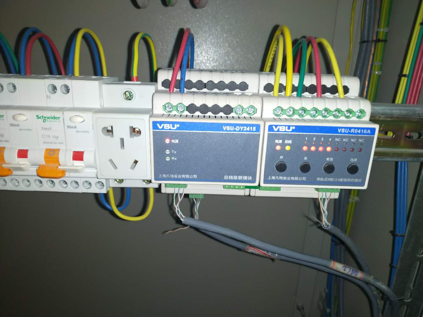 該項(xiàng)目使用如下VSU智能照明總線型系列產(chǎn)品:4路、8路、16路16A智能照明模塊、網(wǎng)關(guān)主機(jī)、級聯(lián)模塊、6鍵面板。通過現(xiàn)場安裝的智能照明控制面板可對處理廠內(nèi)所有燈具的開關(guān)控制,并能實(shí)時觀察到異常燈具的出現(xiàn),盡早安排維修,降低安全隱患。采用VSU智能照明控制系統(tǒng),將普通照明人為的開關(guān)轉(zhuǎn)換成為智能化管理,不僅使管理者能將其高素質(zhì)的管理意識運(yùn)用于照明控制系統(tǒng)中去,而且同時能很大程度上減少商務(wù)大廈的運(yùn)行維護(hù)費(fèi)用。