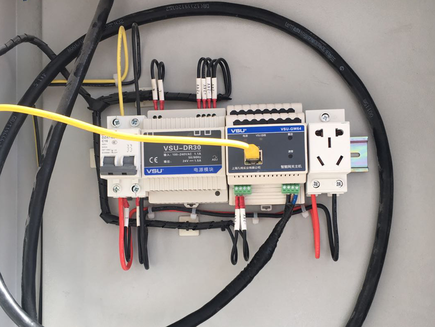 上圖為項(xiàng)目現(xiàn)場(chǎng)內(nèi)的電箱圖片,產(chǎn)品采用導(dǎo)軌式安裝,安裝簡(jiǎn)單,普通電工即可完成。通過(guò)現(xiàn)場(chǎng)的觸摸屏可對(duì)控制終端任意操作,語(yǔ)言選擇中文/English,燈具單控全控,遠(yuǎn)程操控。并且可以將建筑內(nèi)的燈具開(kāi)關(guān)狀態(tài)了如指掌,避免疏忽管理,導(dǎo)致電能耗上升情況的發(fā)生。