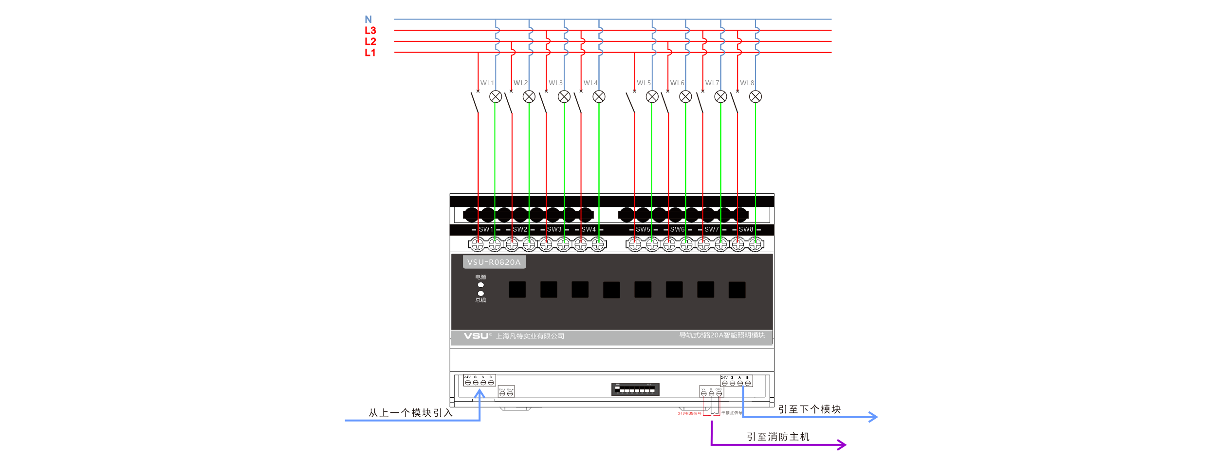 本產(chǎn)品為導(dǎo)軌式安裝,含8路智能繼電器,每回路可獨(dú)立控制4400W燈具的開關(guān),帶應(yīng)急按鍵,LED燈時(shí)時(shí)指示各個(gè)回路開關(guān)狀態(tài),可設(shè)置為互鎖控制4組窗簾開合;