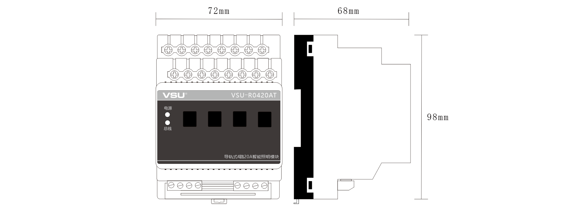 1,標(biāo)準(zhǔn)導(dǎo)軌式安裝占4個模數(shù)位;