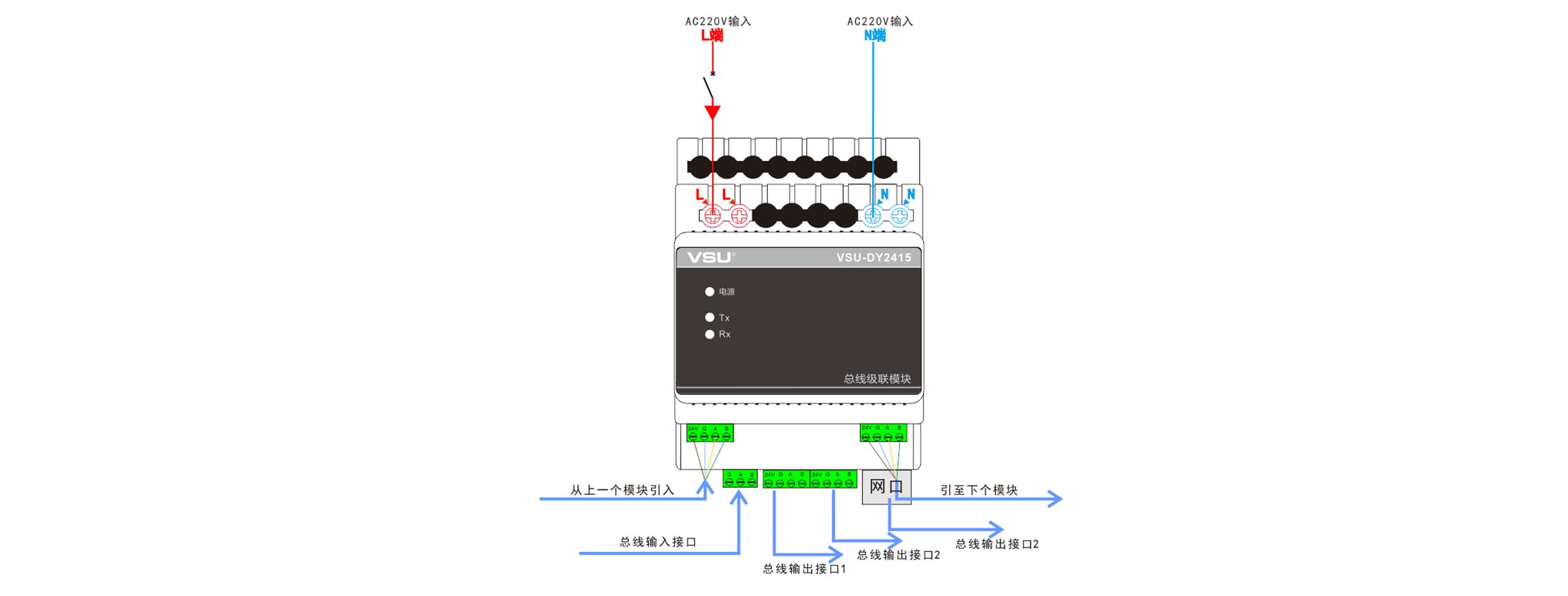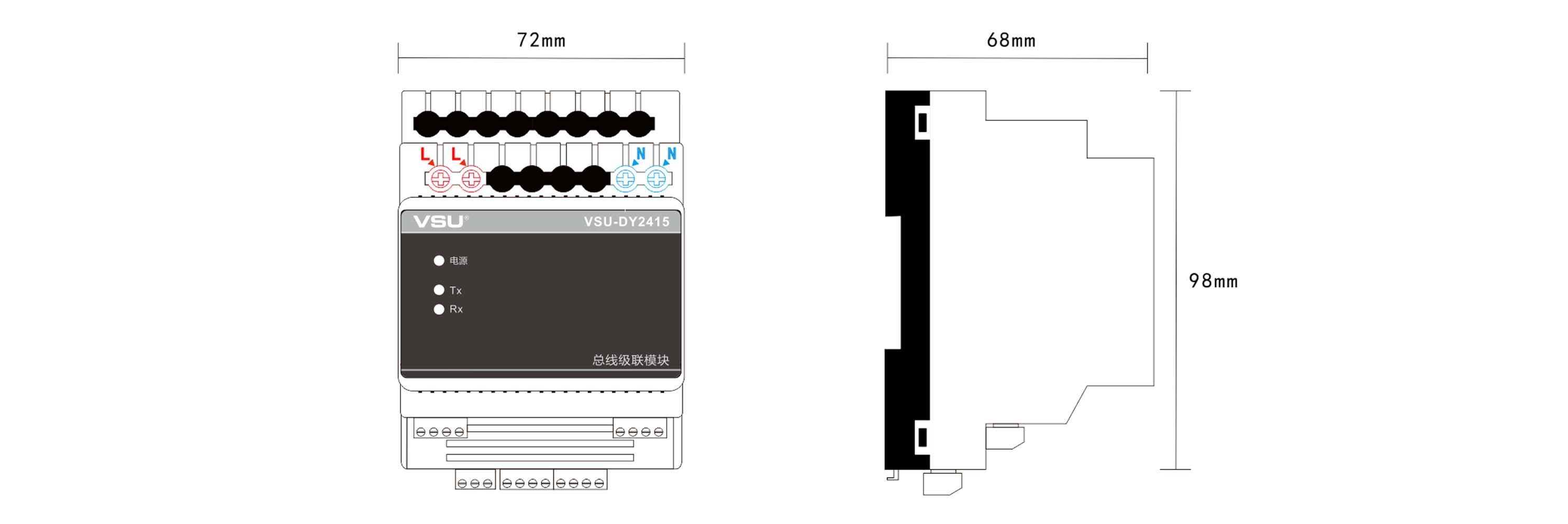 3,導軌式安裝,占4個模數(shù)位,符合VSU-Net總線標準;