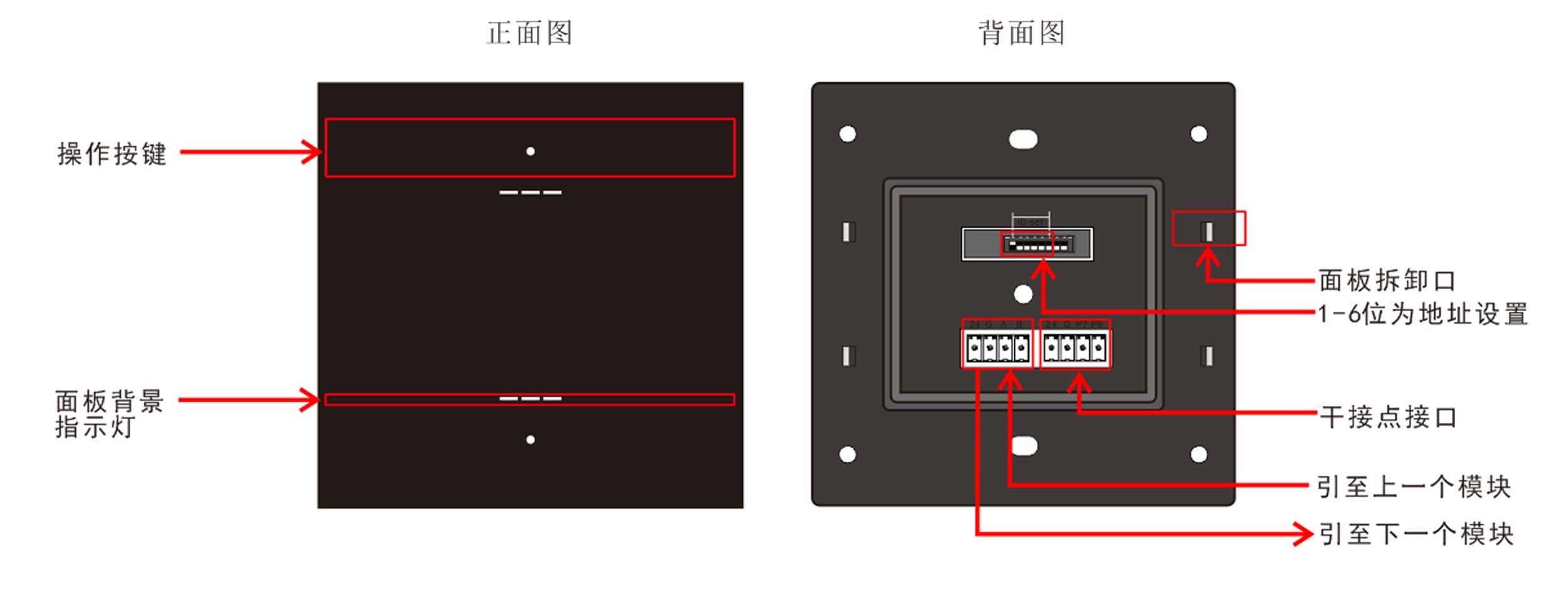 標(biāo)準(zhǔn)86底盒安裝,支持無縫聯(lián)接,提供2鍵,每個(gè)按鍵帶1路LED指示燈,復(fù)位式輕觸開關(guān),結(jié)構(gòu)成熟,性能穩(wěn)定,標(biāo)準(zhǔn)工藝,采用塑料材質(zhì)(顏色可選灰色、黑色和香檳金);自帶感應(yīng)式背光燈;提供兩路IO輸入可外接傳感器。
