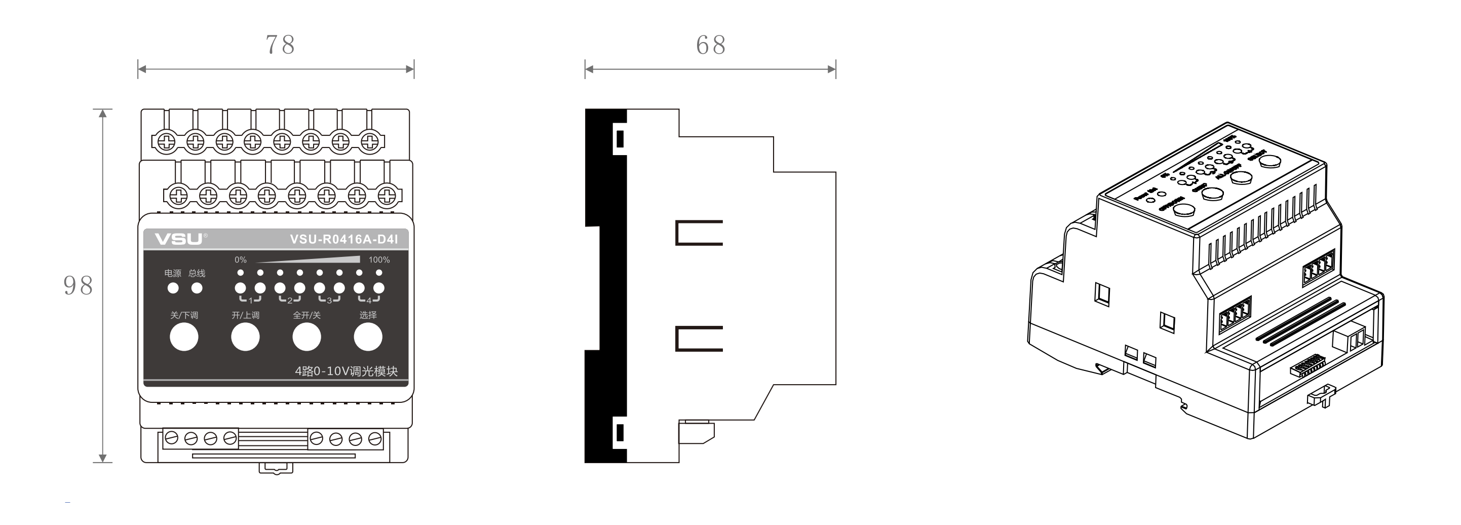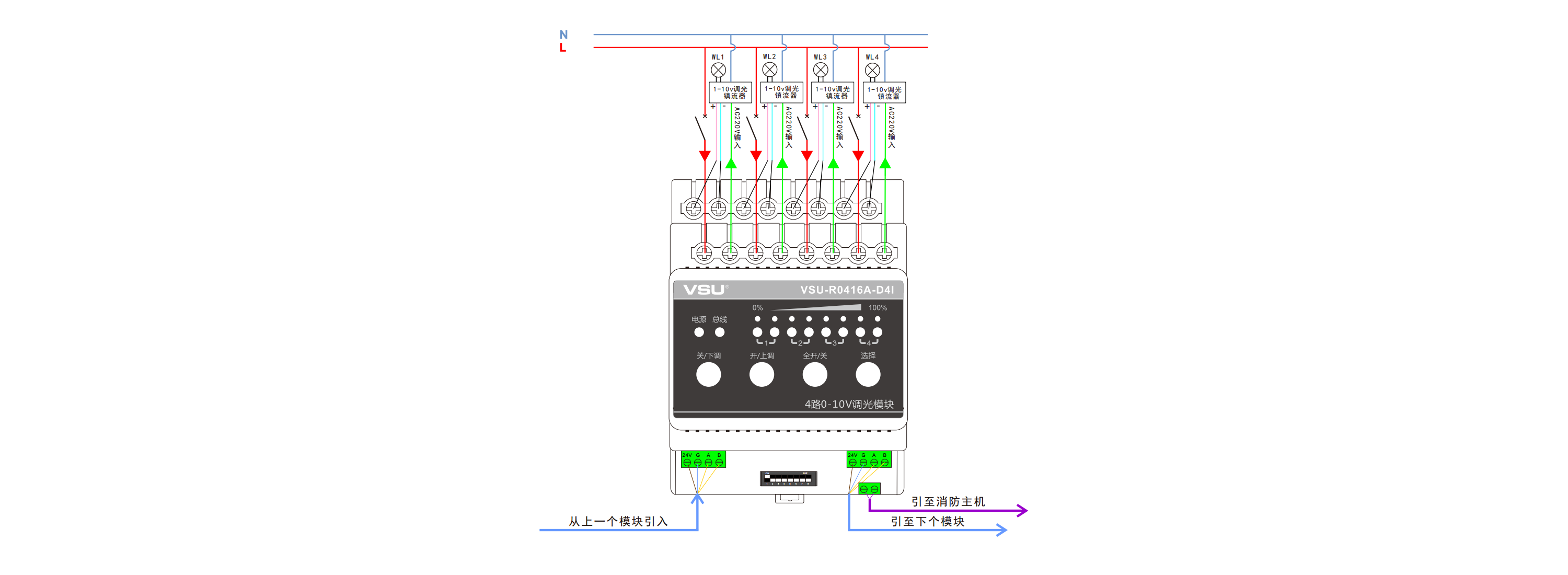 2,提供4路16A繼電器開關(guān)和4路0-10V調(diào)光信號(hào);