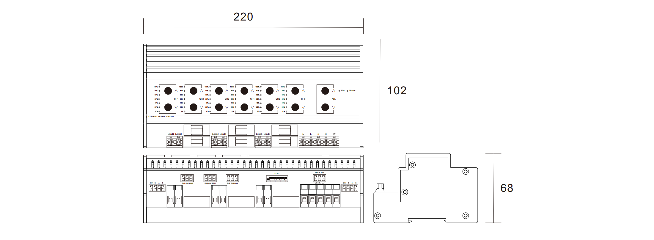 本產(chǎn)品為導軌式安裝,可對LED射燈、筒燈和鹵