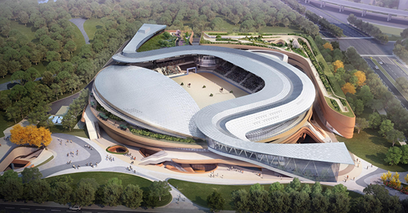 項(xiàng)目概述: 上海久事國際馬術(shù)中心,位于黃浦江畔世博文化公園南部,是世博文化公園南區(qū)重要和特殊的組成部分,國內(nèi)首座符合國際頂級馬術(shù)賽事標(biāo)準(zhǔn)的專業(yè)性比賽場館。場館總建筑面積8.2萬平方米,主體建筑高度15米。該項(xiàng)目選址浦東新區(qū)世博文化公園C04-01a地塊,南臨通耀路,西臨濟(jì)明路,總用地面積3.32公頃,主體建筑包含1個90X60米的競賽場地、熱身場、訓(xùn)練場和高規(guī)格馬廄,以及約5000座觀眾與貴賓看臺等設(shè)施。