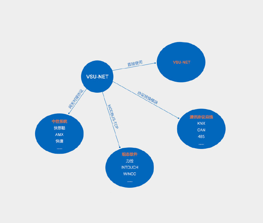 VSU智能照明控制系統(tǒng)通過(guò)自主研發(fā)的VSU-NET通訊協(xié)議可以做到單獨(dú)自組解決方案,同時(shí)也可以與市場(chǎng)上不同通訊協(xié)議的系統(tǒng)搭配,實(shí)現(xiàn)靈活多樣的行業(yè)智能化控制解決方案。 VSU的VSU-NET···